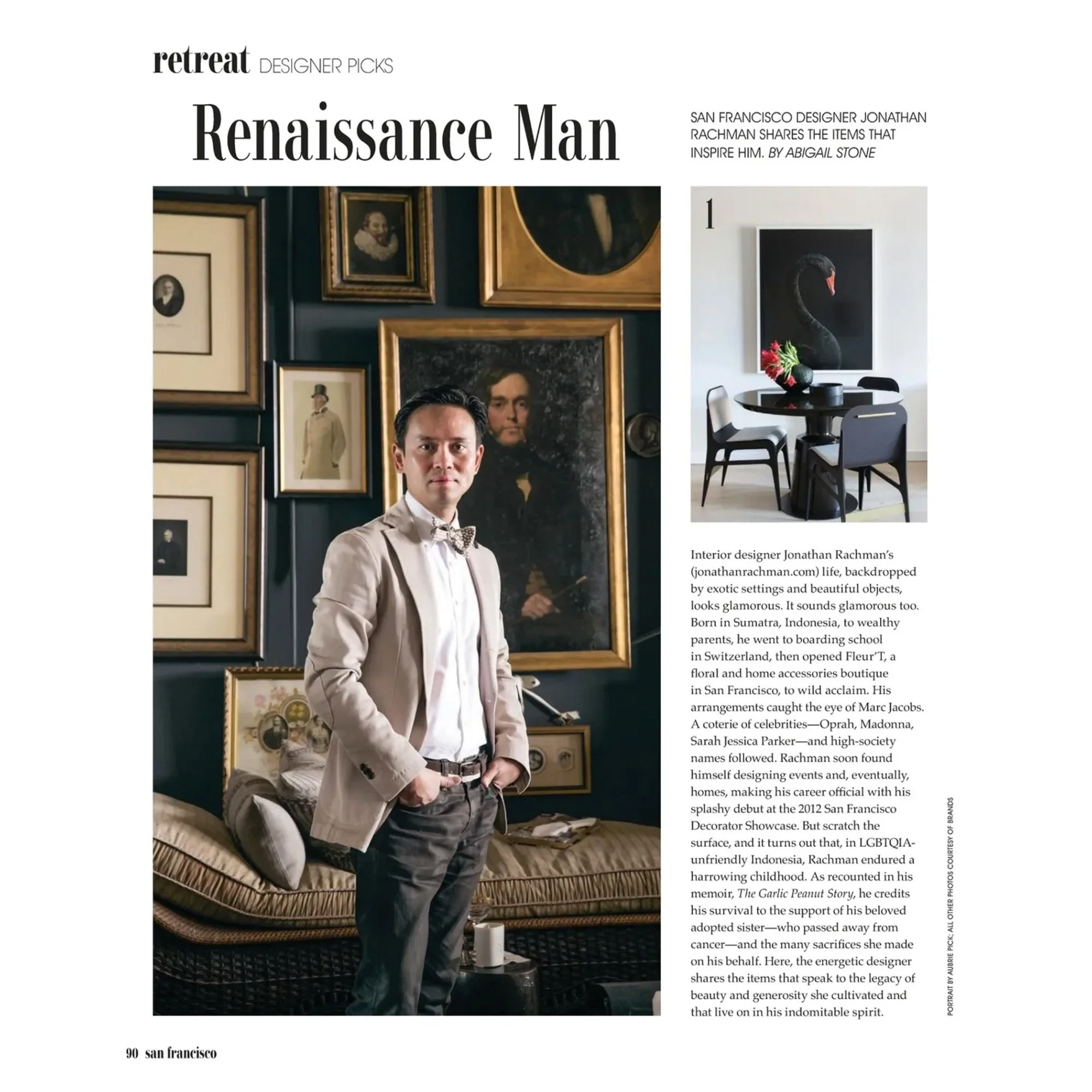 “I’ve always loved the worldly, eclectic glamour of the interior design work of Jonathan Rachman - and now I can be inspired by his current and classic designs every time I escape with this book!”